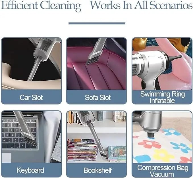 💨 تجمع بين القوة والراحة! تنظف سيارتك ومنزلك بسهولة بفضل نظام الشفط القوي والبطارية الطويلة، مع فلاتر قابلة للغسل لتجربة تنظيف متكاملة.